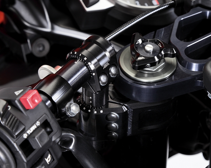 | 【使用上の注意】 ・ハンドル位置を決定した後は、フロントフォークを伸ばし切った状態にてブレーキホースやクラッチケーブル(もしくはクラッチホース)等の長さの確認をして頂き、長さが不足する場合には、別途延長したブレーキホースやクラッチケーブル(もしくはクラッチホース)等をご購入して対処して頂きたく宜しくお願い致します。 ・装着車両によっては、ハンドルを切った際にカウルやタンク等にハンドルバーやレバーやスイッチボックス等のハンドル周りのパーツが干渉する場合がありますので、その場合にはハンドルストッパー等を追加して対処して頂きたく宜しくお願い致します。 |