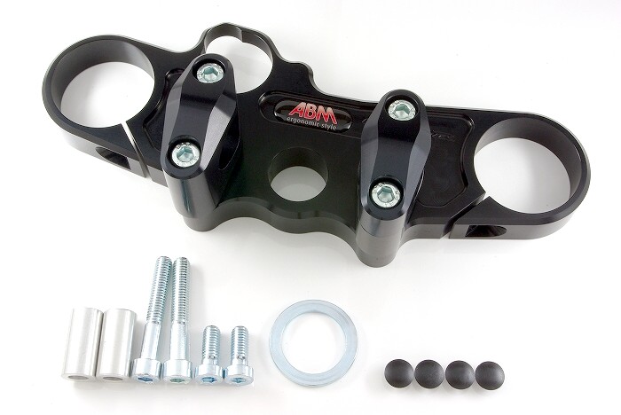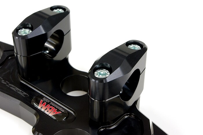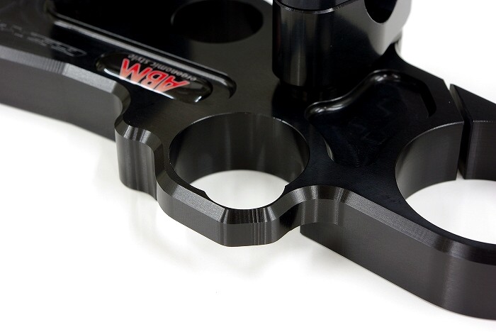 | ◆ドイツ製らしい品のあるデザイン ABM製のトップブリッジは、角ばった武骨なデザインが特徴の国産品とくらべ、コーナーがアールでデザインされていることで、しっとりしたアダルトな品格を醸しだしております。 ◆強度の違いが分かる人々に愛されています ABM製のトップブリッジは、バーハンドルを取り付けることを前提に設計されていないノーマルトップブリッジに対して、見た目の美しさだけではなく、非常に高い強度で設計されていますので、チャタリング等を気にするジムカーナJAPAN代表の作田隆義選手他、多くのライダーに愛用されています。 |