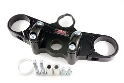 | ◆ドイツ製らしい品のあるデザイン ABM製のトップブリッジは、角ばった武骨なデザインが特徴の国産品とくらべ、コーナーがアールでデザインされていることで、しっとりしたアダルトな品格を醸しだしております。 ◆強度の違いが分かる人々に愛されています ABM製のトップブリッジは、バーハンドルを取り付けることを前提に設計されていないノーマルトップブリッジに対して、見た目の美しさだけではなく、非常に高い強度で設計されていますので、チャタリング等を気にするジムカーナJAPAN代表の作田隆義選手他、多くのライダーに愛用されています。 |