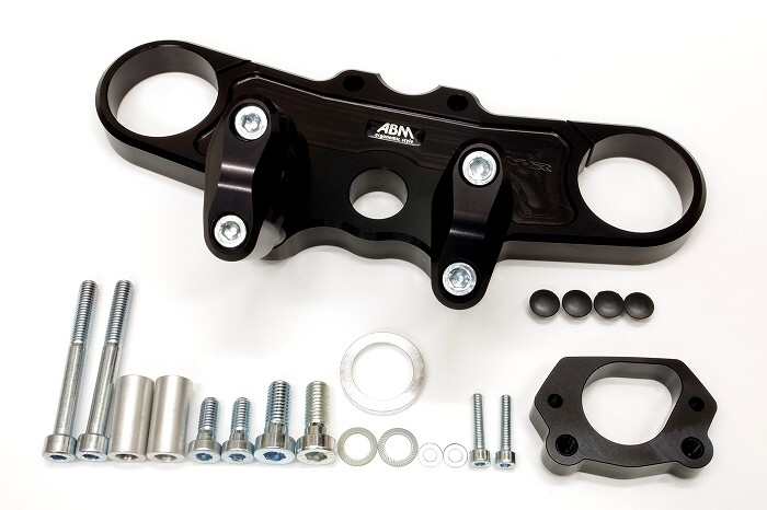| ◆ドイツ製らしい品のあるデザイン ABM製のトップブリッジは、角ばった武骨なデザインが特徴の国産品とくらべ、コーナーがアールでデザインされていることで、しっとりしたアダルトな品格を醸しだしております。 ◆強度の違いが分かる人々に愛されています ABM製のトップブリッジは、バーハンドルを取り付けることを前提に設計されていないノーマルトップブリッジに対して、見た目の美しさだけではなく、非常に高い強度で設計されていますので、チャタリング等を気にするジムカーナJAPAN代表の作田隆義選手他、多くのライダーに愛用されています。 |