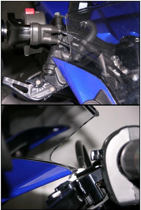 全ての商品は、カウル、スクリーン、ミラー、タンク等への干渉問題について、一切保証は出来ず、問題が発生しましても、返品等は一切受け付けませんので、予め御了承してください。また、干渉が発生した場合には、カウルやスクリーンはカットして頂くか、ハンドルストッパー等を追加することで対処して頂きたく、予め御了承してください。 |