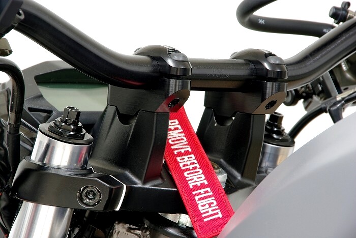 | ◆製品の特徴 ※汎用のφ22.2(22.2mm)の外径のハンドル用のハンドルポストに使用する事で高さを増すと共にハンドル位置を手前に持ってくるキットです。よりコンフォータブル(快適)なポジションにされたい方や、フロントフォークの上にバーハンドルがあると、イニシャルやダンピング調整やフォークの突き出しができないのでハンドル取り付け位置を上方及び手前に移動したいという方にお勧めです。 ※下側の取り付けボルトの穴のピッチは34mmですが、10mmの長穴になっている為、32〜36mm程度のピッチに対応出来そうです(当方では保証は出来ませんので、実際の取り付けの可否は自己責任にてご判断して頂きたく予め御了承してください)。 |