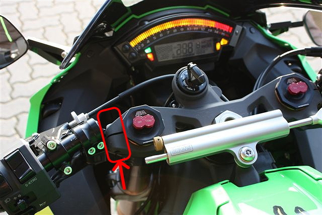 | セパレートハンドルでバーハンドル車と同等のポジションが可能! ※画像はネイキッド化したZX-25Rへの『マルチクリップ【φ45】ハイ(65mm上下調整可)』の装着例です。 |