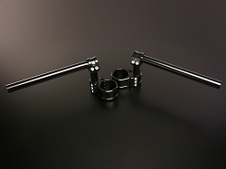 | 【使用上の注意】 ・ハンドル位置を決定した後は、フロントフォークを伸ばし切った状態にてブレーキホースやクラッチケーブル(もしくはクラッチホース)等の長さの確認をして頂き、長さが不足する場合には、別途延長したブレーキホースやクラッチケーブル(もしくはクラッチホース)等をご購入して対処して頂きたく宜しくお願い致します。 ・装着車両によっては、ハンドルを切った際にカウルやタンク等にハンドルバーやレバーやスイッチボックス等のハンドル周りのパーツが干渉する場合がありますので、その場合にはハンドルストッパー等を追加して対処して頂きたく宜しくお願い致します。 |