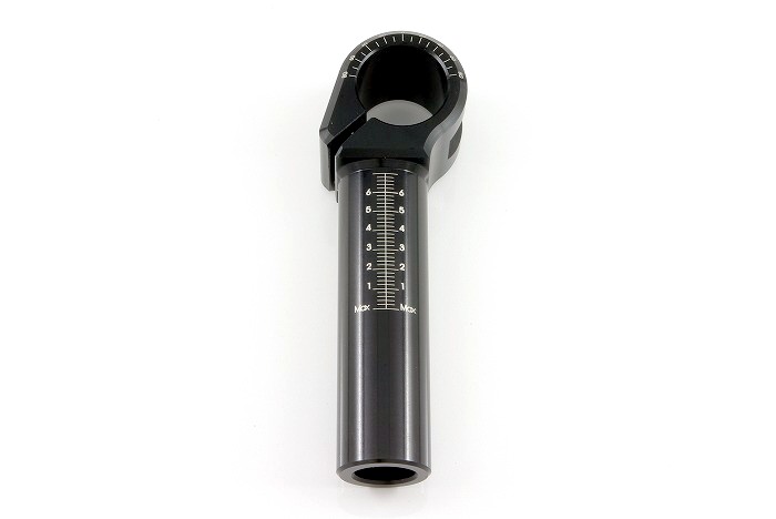 | ハンドルクランプの目盛の単位は1mmで、 印字されている数字と数字の間の部分は実際には「5mm」で、 『6』の部分で「30mm」となりますので宜しくお願い致します。 |