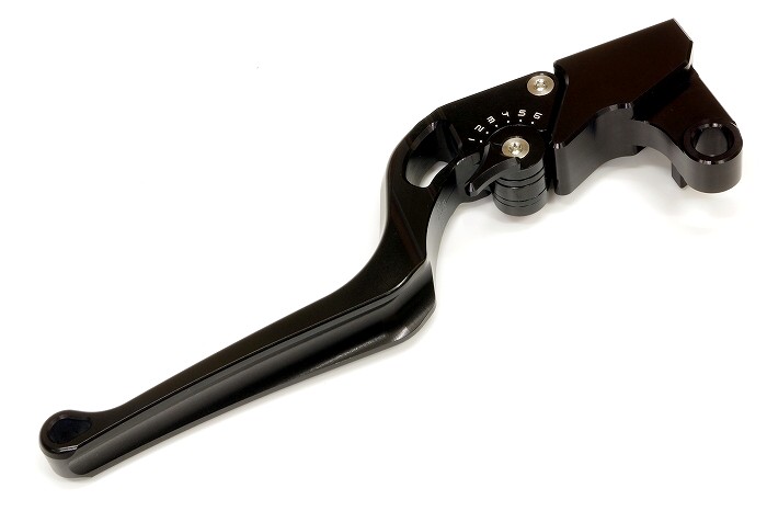 | ◆製品の特徴 ● ドイツ製です。 ● レバーのカラーは黒のみです。 ● アジャスターは8種類のカラーから選択可能です。 ● レバーの距離を6段階に調整できます(先端で30mm程度の調整幅)。 ● 握り部分はABMブランドのシント・ビレットレバーよりも幅広いデザインで、インデイアン製のバイクに似合います。 |