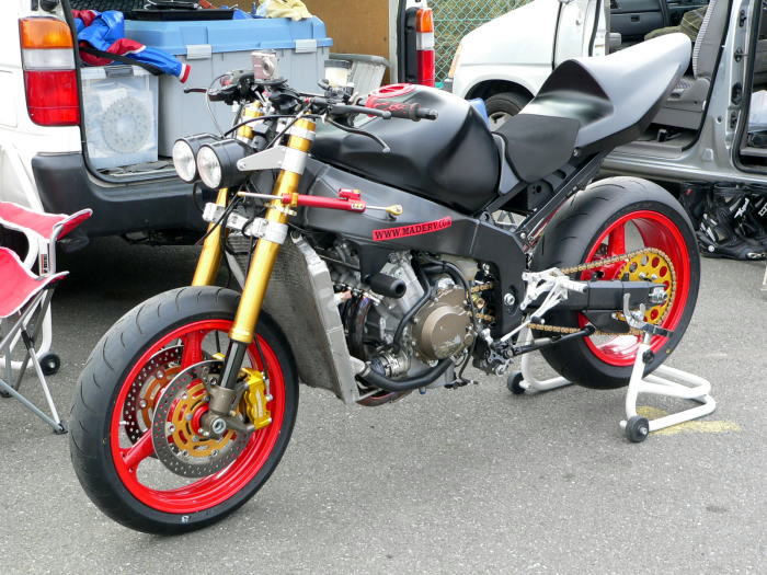 | パドックではギザカワユス(しょこたん☆ぶろぐ風)なルックスなのに、コース上ではアニマリータ(野獣美女)になってしまうyktさんの奥さん。(参考:『ニキータ』)サーキットでは、多くの男性ライダーが、彼女の背中を拝むことになります。 |