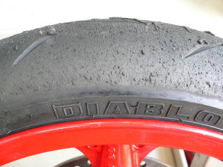 | KTM世田谷さんの走行会では、あの忌まわしいスポーツマックスGPから、普通に良いタイヤのディアブロスーパーコルサに交換したことで、普通にタイムアップしましたが、個人の主観として、BT-002の方が感触が良かったので、またまたBT-002に戻すことにしましたが、6万円近いお金を払って買ったディアブロスーパーコルサを、「普通に良いタイヤ」の一言で片付けて、まだ使えるディアブロスーパーコルサを