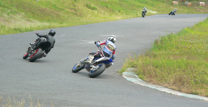 | ZX-12R氏。以前はじっくりクラスで走っていましたが、参加されるたびに速くなっているようで、1回目の走行では私のうしろにピッタリついてきていて、全然離れないので少しビビりました。 |