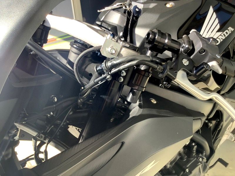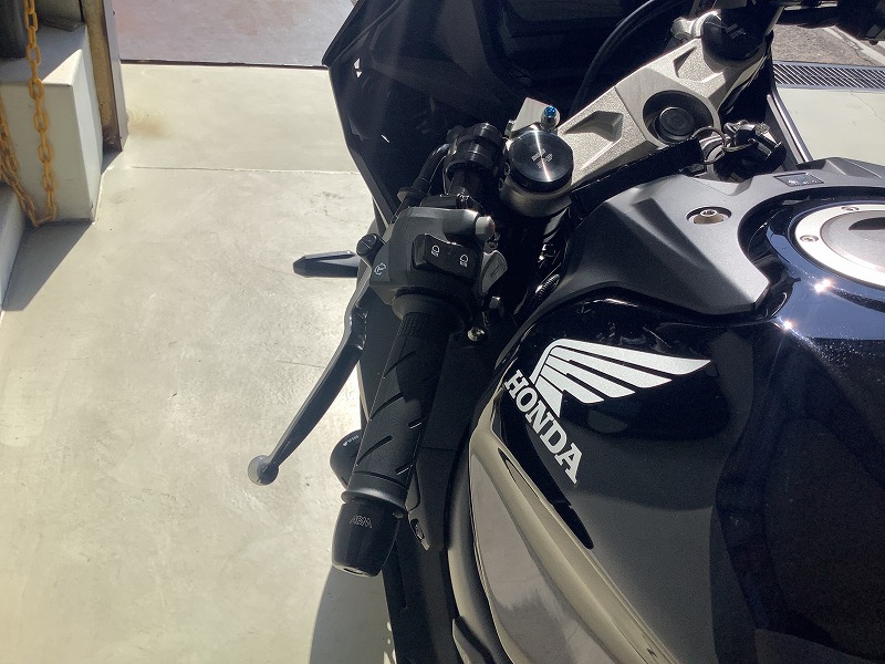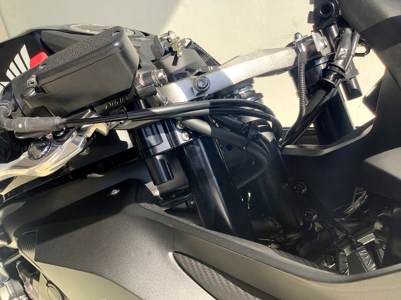 | ★山口県ホンダドリーム山口宇部様のレポート お世話になっております。ホンダドリーム山口宇部です。 取付が完了いたしました。 タンクとのクリアランスは純正相当で、お客様の車両はアッパーカウルカバーが付いておりますので、マスターシリンダーとのクリアランスが純正より狭いためそれに合わせての調整です。 セッティングとしては、フォーククランプをトップブリッジやや平行、手前側メモリ4、高さは3.2です。 背中がより起き上がり、前傾さが和らいでおり、お客様にも喜んでいただけました。 ありがとうございました!! ★ABMジャパンより この度のお買い上げ、及び画像とレポートのご提供、誠に有難う御座います! では、また何かご縁が御座いましたら、その際は是非、宜しくお願い致します! |